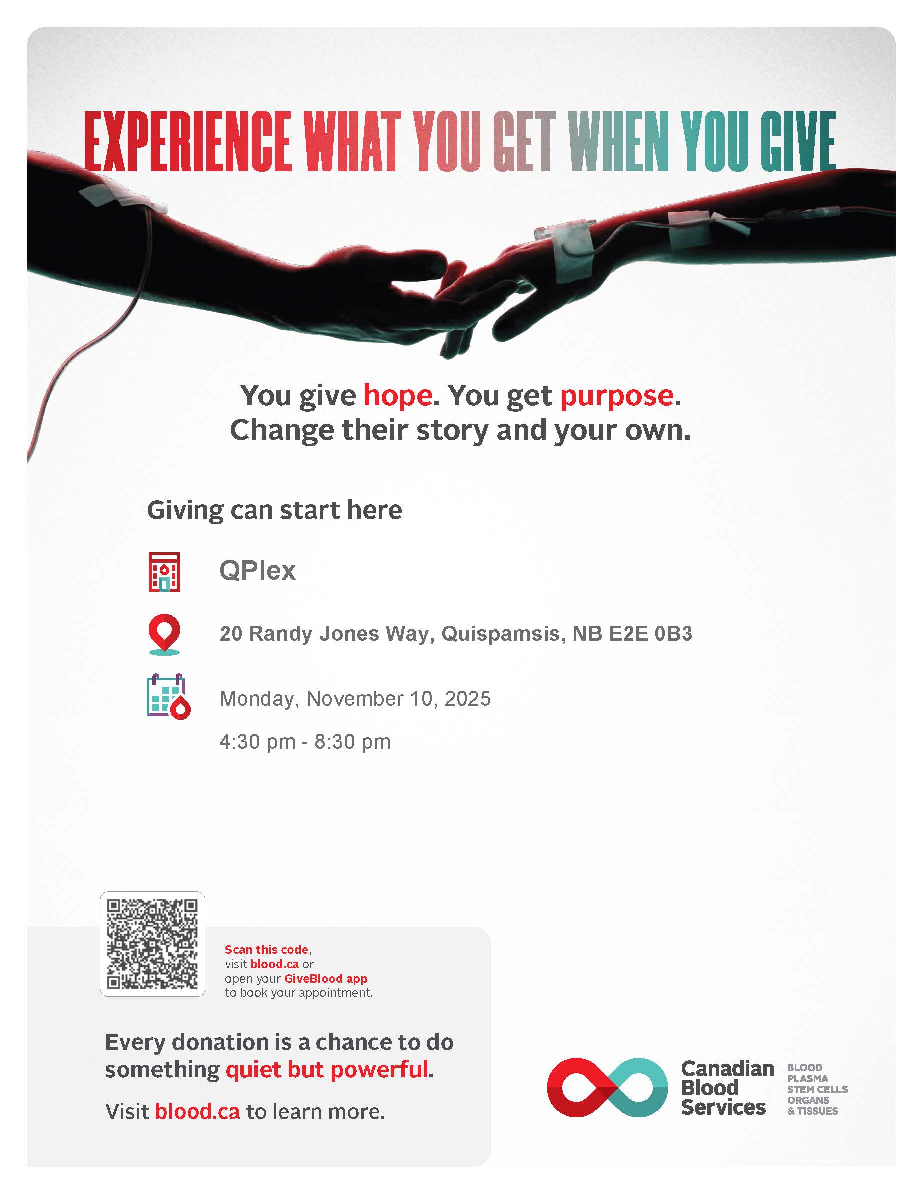 Canadian Blood Services is holding a blood donor clinic on Monday, November 10, at the qplex.